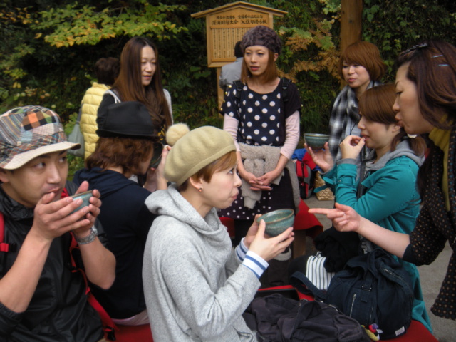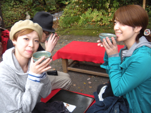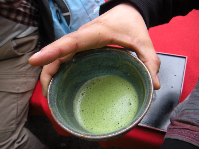 ちゃんと手を合わせてから一緒に撮影しましたここではお茶をたててもらえるんだよ